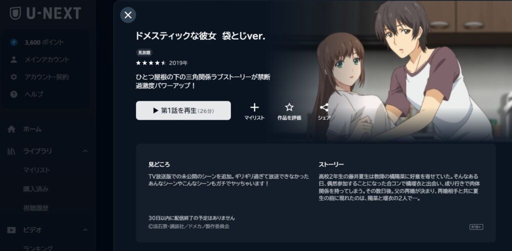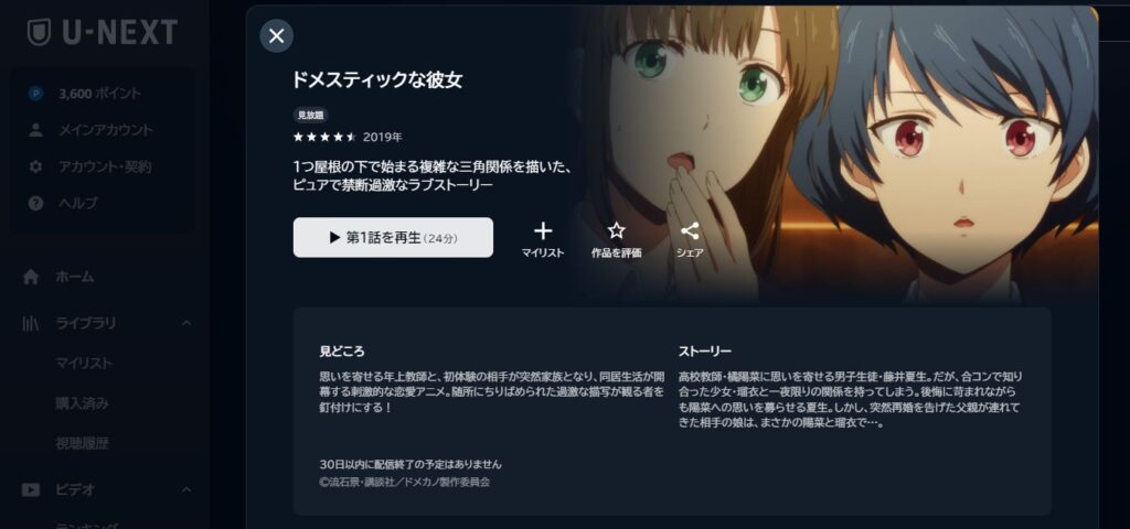 『ドメスティックな彼女』全12話の無修正版は、U-NEXTで見放題配信中。